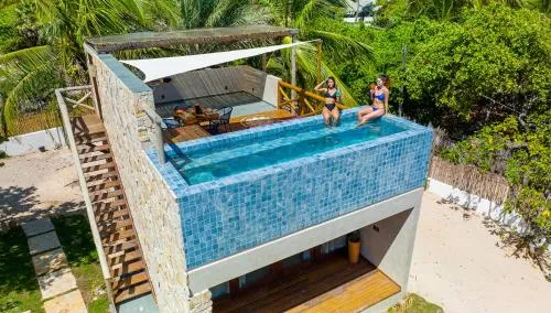Una casa de huéspedes en Atins con una 'Sky Rooftop'. Un área en la azotea, especialmente una descrita como 'sky', sugiere una característica premium que ofrece vistas potencialmente exclusivas o un espacio de alta gama para la relajación y la socialización.